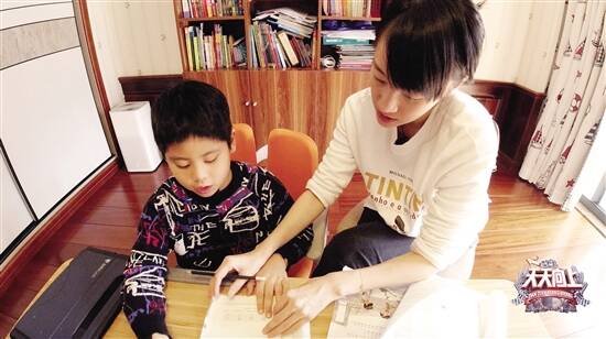不同父母在对待“网课”的态度上有所不同,本期《天天向上》邀请到了章龄之与其儿子、黄觉麦子一家现身说法,用真人秀的方式观察两组家庭的日常学习生活。节目中,陈龙章龄之夫妇和黄觉麦子夫妇对网课有着截然不同的态度:章龄之是“虎妈”教学,坚持将网课落实到底;而黄觉麦子夫妇则更重视在家培养孩子的各项综合素质。 节目中,章龄之透露:宅家期间,自己陪儿子上网课,看儿子打架,每天都像在看真人秀。“沉迷”于陪孩子上网课的章龄之还给天天兄弟出了一年级的考题,天天兄弟竟都被难倒。章龄之还吐槽说,因为给孩子上网课,自己的家庭地位急剧下降,惨变最后一名。所以,希望在外拍戏的老公陈龙在和儿子视频的时候不要说给自己拖后腿的话。 另一边,黄觉夫妇就显得“开明”许多,黄觉说:“一个家庭不能有两种意见,所以我在家里是透明的。”而他的行动也证明了这句话,原来他们家这次的日常环节全部由黄觉掌镜,他仿佛只是一个“摄像机器”,被汪涵调侃“好像湖南卫视摄像组组长”。不过,麦子也为老公打了“圆场”:“我们家做决定性的大事都是黄觉做的。” 此外,在家上网课的学生仔和在家“云办公”的“上班族”,都面临用眼过度的问题。本期节目中,《天天向上》还特意为在家“云上课”、“云办公”的观众设计了一套眼保健操,由王一博配音,天天兄弟集体打样,起到了很好的示范作用。