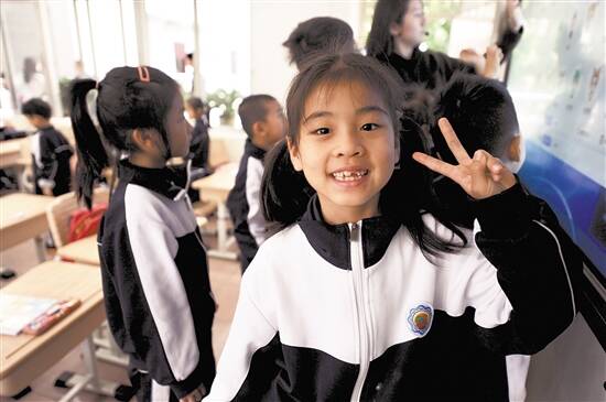 ■今年,天河区港澳居民随迁子女参加积分制入学,招生学校仍为广州市南国学校。图为南国学校小学部港澳子弟班学生。 新快报记者 林里/摄 |