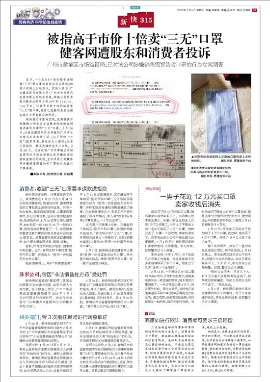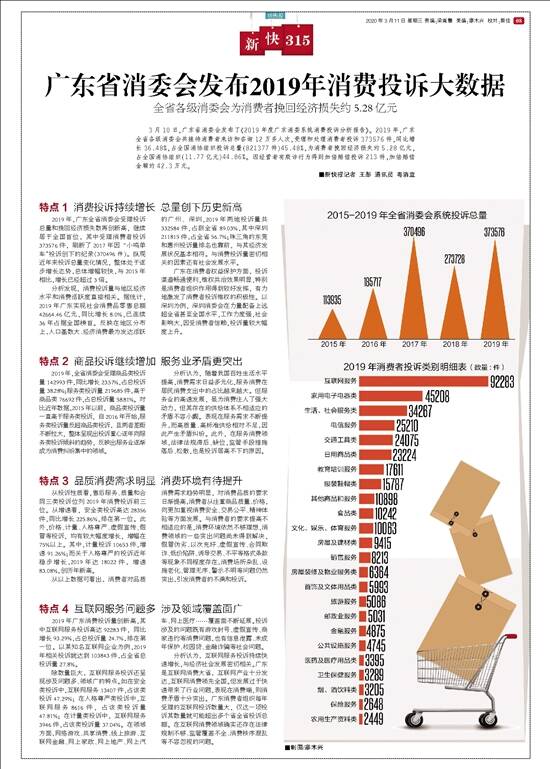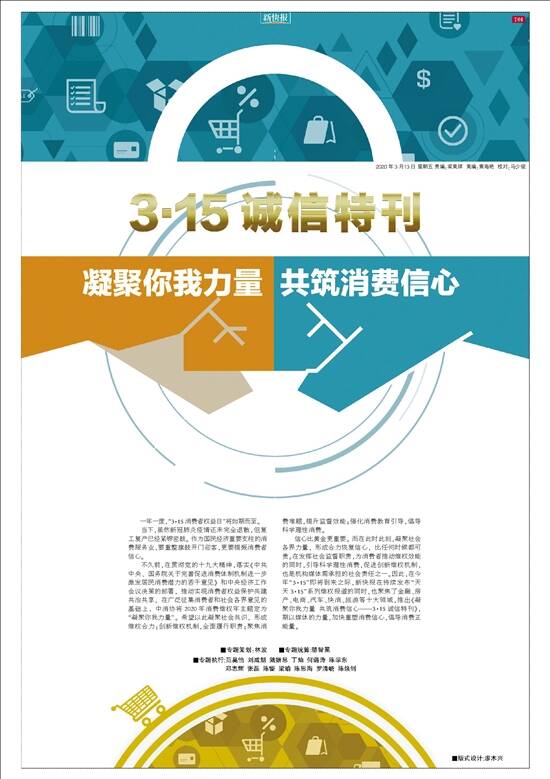 22年来,新快报推出了众多在社会上引起反响的报道,其中,可圈可点的要数已经有8年“刊龄”的 “新快3·15”品牌栏目。 新冠肺炎疫情突如其来,今年的“3·15”国际消费者权益日注定和往昔不同,疫情未退,餐饮、旅游、房产等消费市场蒙上阴霾,无论是商家还是消费者都深受影响,期间更是衍生出疫情防控期间消费领域新情况新问题。在此背景下,新快报一如既往地,坚持为维护消费者的合法权益发声为己任,联合相关职能部门,形成维权合力,共筑消费信心。 实际上,多年以来,“新快3·15”凭借传统媒体的影响力和公信力,利用新媒体的传播优势,同时发挥媒体的舆论监督作用,在住房、金融、美容、汽车、家装、家电、食品、旅游等消费领域,通过一篇篇调查报道,揭露了那些不为人知的行业黑幕、消费陷阱,曝光了那些侵害消费者权益的品牌、商家,赢得了广大读者、消费者的支持和信任。 值得一提的是,新快报在持续发布“天天3·15”系列维权报道的同时,还聚焦了金融、房产、电商、汽车、快消、旅游等十大领域,推出《凝聚你我力量 共筑消费信心——3·15诚信特刊》,期以媒体的力量,加快重塑消费信心,倡导消费正能量。 ■新快报记者 梁美琪 感言 “助力维护消费者权益,是‘新快3·15’的宗旨。无论现在还是将来,‘新快3·15’不会就此停下脚步。我们定将一如既往,为维护消费者的正当权益而倾尽全力。” ——新快报采访中心 社会部主任张小奋