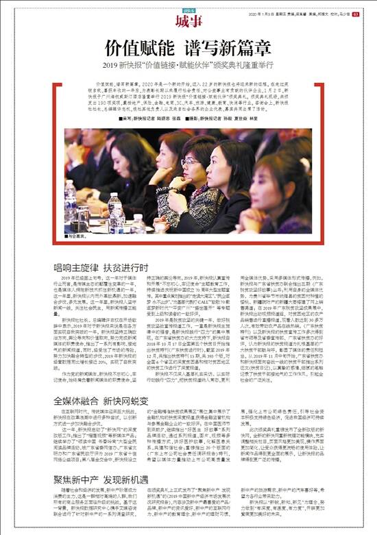 唯创新者有力,唯奋斗者有为。在互联网时代,传统媒体迎来巨大挑战,新快报在改革浪潮中进行多种尝试,以创新方式进一步加快融合步伐。 作为一家成立了22周年的媒体,新快报自诞生之日起,就一直随读者而成长,因市场而变化,恪守“新锐新知新见”的理念,不忘初心,牢记使命,始终肩负着新闻媒体的职责使命,坚持正确的舆论导向,坚守新闻一线,从内而外革故鼎新,于创新融合中前进,多元发展。 1998年3月30日,新快报创刊;2013年底,新快报推出国内首个“轻报纸”;2016年8月28日,新快报联手ZAKER打造ZAKER广州;2018年10月24日,致力于数据长图、创意短视频、移动端H5等的新快数据研究中心让枯燥的数据变得有趣;2019年,推出“榴莲视频”等新媒体产品,官方微博粉丝突破2600万;2020年1月,全新深度改版的新快网重磅面世,……如今的新快报已经由一张报纸成长为拥有新快网、轻报纸、微博、微信、ZAKER广州APP的全媒体矩阵。经受住了市场的考验、努力加快融合转型的步伐的新快报,2019年实现了“两个效益”双丰收,实现了自我突破。 价值赋能,拥抱新技术,抓住新机遇,谱写新篇章,新快报一直在路上。在将来,新快报将继续秉承着 “新锐、新知、新见”的理念,努力做到“有深度、有温度、有力度”,开辟更加繁荣更加美好的未来。 ■新快报记者 梁美琪