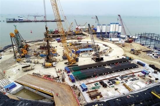 ■深中通道项目S05工程合同段项目部负责的伶仃洋大桥西索塔建设现场。 新快报记者 李红云/摄 |