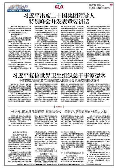 习近平出席二十国集团领导人 特别峰会并发表重要讲话
