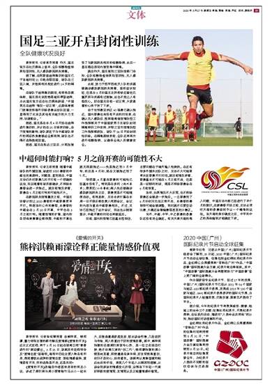 新快报讯 记者王敌报道 随着中超球队的外援回流,球迷对2020赛季的中超也充满期待。问题是,直到现在,中国足协仍未对联赛几时开打有一个明确的说法,而且随着有球员被确诊,不排除本