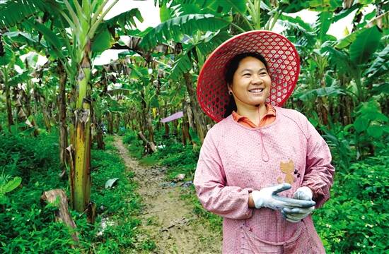 ■贫困户周银爱到粉蕉种植基地务工,每月收入约有2500元。 |