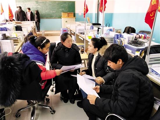 ■余家穗到级组与老师们研究工作。 |