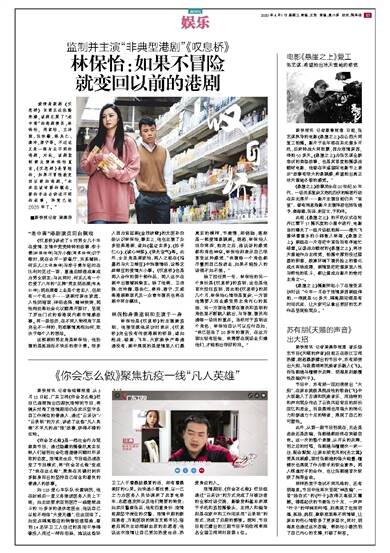 《悬崖之上》故事发生在20世纪30年代,一场关系复杂又危机四伏的秘密行动在东北展开……影片主演目前仍未“官宣”,曾有消息指影片主演阵容包括张涵予、秦海璐、张译、朱亚文、于和伟。 此前,《悬崖之上》的开机仪式在牡丹江零下17摄氏度的小雪中进行,电影当时曝光了一组片场航拍照——漫天飞雪伴着雪乡的小路散入林海,《悬崖之上》剧组在一片苍茫中紧张而有序地忙碌着。以谍战为题材的《悬崖之上》,将冰天雪地作为主视觉,拍摄中厚到没过膝盖的积雪、极寒环境下演员脸上的雪化成水再结成霜,剧情里茫茫雪原里人性与野性的乱斗,都让雪成为影片的绝对主角之一。 《悬崖之上》摄影师赵小丁在接受采访时说“今年一月由于疫情原因剧组停拍,一停就是50多天,隔离期间倒是有时间沉淀,让大家可以拿出更好的艺术作品呈现给观众。” 苏有朋《天赐的声音》出大招 新快报讯 记者梁燕芬报道 音乐综艺节目《天赐的声音》目前正在浙江卫视热播,据悉最新播出的节目中,苏有朋使出大招,与段奥娟将民族音乐融入《飞》。而张韶涵与檀健次共舞,胡海泉则颠覆性改编《叶子》。 节目中,苏有朋一回归便使出“大招”,在原本就极具挑战性的歌曲《飞》中大胆融入了古调和民族音乐,用独特的和声向观众传达了云淡风轻背后的那份回忆和思念。而段奥娟也用强大的消化力和穿透力十足的嗓音,展现了自己的可塑性。 此外,从第一期节目到现在,无论是选曲还是改编,张韶涵都始终在突破自我。这一次的整个表演,从开头的共舞,到之后的对唱,张韶涵与檀健次一来一往,配合默契,让原本朋克风的《光之翼》更具戏剧感。面对张韶涵的强大能量,檀健次也展现了作为歌手的职业素养。两人棋逢对手的合作,也让张韶涵首次斩获了推荐金曲。 同样热衷于尝试不同风格的,还有胡海泉。节目中他再次呈现“神改编”,一首“独白式”的《叶子》改得又高级又震撼。错落起伏的节奏张力十足,一声声“叶子”的呼喊和吟唱,则展现了包括悲痛、孤独、疯狂、歇斯底里等不同情绪,让原本的伤心情歌多了更多层次。同时,胡海泉也通过这次改编,帮助汪小敏找到了自己内心的支撑,打破了标签。
