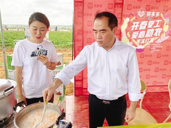遂溪县委书记的直播,也是继徐闻菠萝、饶平潮州柑之后,广东省农业农村厅与拼多多达成战略合作的第三场直播。战略合作指出,未来三年内,月月有市县长上线直播促销,每年不少于12位广东省的市、县一把手进入拼多多主播间助农直播,助力广东特色农产品触网上线进城,建设广东数字农业“新基建”,推动广东数字农业走在全国前列。 县委书记下田挖红薯,助农直播直接卖“爆仓” 遂溪县位于广东省西南部,“溪水合流,民利遂之”,因此得名遂溪。因为阳光充足、终年无霜,红薯一年能产2—2.5季,几乎全年都有新鲜现挖的红薯售卖。 “遂溪红薯表皮光滑、没有皱痕,经久耐放。”站在红薯地里,县委书记余庆创一边捡起自己刚刨出来的红薯,一边向228万网友介绍。 这次拼多多直播间,特意搭在了红薯地里。“遂溪红薯富含钙、镁、铁、硒等人体所需的微量元素,有较好的保健功能,对肠胃不适者尤其有效。”带着刚刨出来的红薯,余庆创走到直播间的另一侧,清洗、削皮、切丝,然后放在白粥之中,为网友展示了红薯粥的做法。“这是地道的广东吃法,煮好了再加一点咸菜,就是非常美味的早餐。” 当然,直播中的余庆创并没有忘记此次直播的“本职”,一边介绍各种吃法,一边不时“带货”:“在超市平时可能需要3-5块钱一斤的遂溪红薯,现在下单5斤只要10.9元,放心买,不用担心会坏,遂溪红薯最长可以放半年。” “为百姓做实事,点赞”“10斤已下单”“书记的刀工很秀”,在评论区,不少拼多多网友纷纷留言,为书记的亲民点赞,并用下单来支持遂溪红薯。 书记的专业带货,让商家此前为全天直播准备的一万份红薯在下午4点就早早销售告罄,商家不得不临时补货、重新加上了链接。最终,在余庆创的带动下,90吨遂溪红薯当天销售一空。 接棒徐闻,遂溪打响农产品的“粤字号” 228万观看、90吨售卖,这是广东省探索“市县一把手助农直播”后首位书记的带货成绩单。 不过,相比较成绩,余庆创更看重背后的含义。“虽说下六红薯已经是国家地理标志产品,但名气还是不够大,希望这次能借助拼多多直播,彻底打响遂溪红薯的品牌。” “拼团+直播”的方式正在成为农产品品牌打造的重要方式之一。书记带头直播,正在努力用新技术实现农产品品牌的“弯道超车”。 不仅仅是遂溪,就在遂溪130公里之外的徐闻县,一个多月前,就尝到了“拼团+直播”的甜头:县长上阵直播不仅两小时带货15万斤,而且因为直播带动,徐闻菠萝目前地头收购价已大幅上涨。同样,在广东东大门的饶平县,县长代言最终吸引了超30万消费者观看。 3月12日,拼多多与广东省农业农村厅正式签订了合作框架协议,未来三年内,平均每月不少于一场,即每年有不少于12位广东省的市县一把手进入拼多多主播间助农直播,助力广东特色农产品进城。与此同时,拼多多还将配合广东省农业农村厅,共同孵化50个广东省特色农产品品牌。 “徐闻菠萝之后,遂溪红薯再次爆卖,已经证明了‘拼团+直播’在打造农产品品牌方面有着独特的能力,”拼多多新农业农村研究院副院长狄拉克表示,“广东农产品品牌化一直走在中国前列,我们希望未来与广东省农业农村厅一起,打造出更多的‘粤字号’。” 自2020年2月10日起,拼多多在全国率先开启了“政企合作,直播助农”,探索“市县长当主播、农户多卖货”的电商助农新模式。截至3月27日中午12点,拼多多已累计售出滞销农产品4300万单,总计超过3.25亿斤,帮扶超过8.2万农户。(郑志辉)