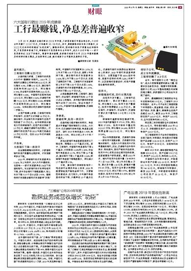 3月30日,随着农业银行晒出2019年年报,六家国有银行年报全部出齐。六大行去年共赚了11167亿元,日均盈利30.59亿元。其中,最能赚钱的依旧是工商银行,以3122亿元的净利润稳坐“头把交椅”