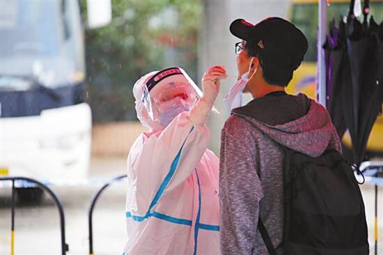 ■医护人员为入境人员进行咽拭子采样。图片:通讯员提供 |
