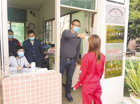 ■罗定保生前到村中企业为外来人员测体温。 受访者供图 |