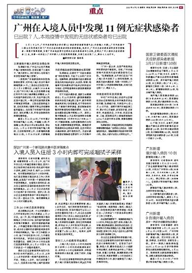 新快报讯 记者黎秋玲 通讯员粤卫信报道 3月31日0-24时,广东全省新增境外输入确诊病例10例,分别为广州报告9例(美国输入3例,尼日利亚输入2例,菲律宾