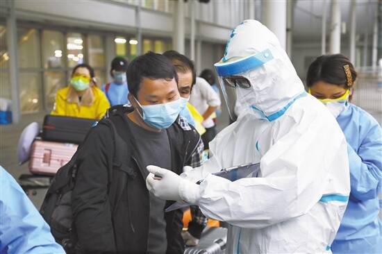 ■广州市海珠区工作人员在机场转运入境旅客。 通讯员提供 |