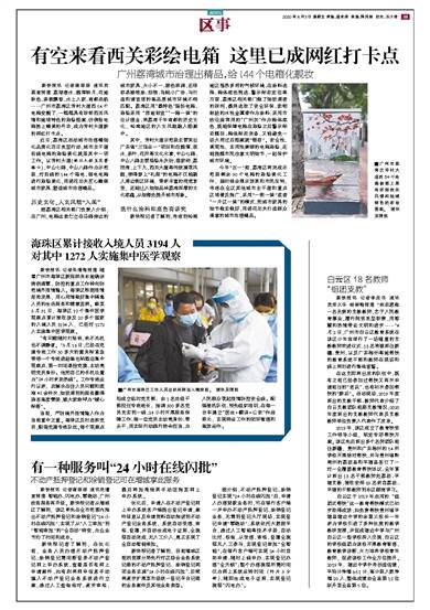 新快报讯 记者朱清海报道 随着广州市海珠区新冠肺炎本地确诊病例清零,防控的重点工作转向防范境外疫情输入。海珠区根据疫情形势发展,用心用情做好集中隔离人员的生活服务和健康监测。截至3月31日,海珠区