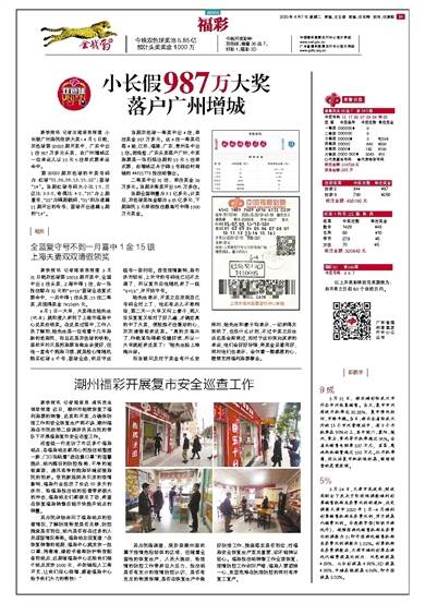 新快报讯 记者出陆妍思报道 小长假广州彩民收获大奖!4月5日晚,双色球第20020期开奖中,广东中出1注987万多元头奖,由广州增城区一位幸运儿以10元5注单式票幸运命中。