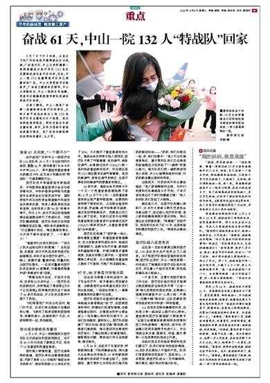 4月7日下午4时多,从武汉飞往广州的包机平稳降落在白云机场,广东医疗队、中山大学附属第一医院驰援武汉医疗总队132名队员圆满完成任务平安归来,至此,中山一院150名援鄂医疗队员已悉数回到广东。中山