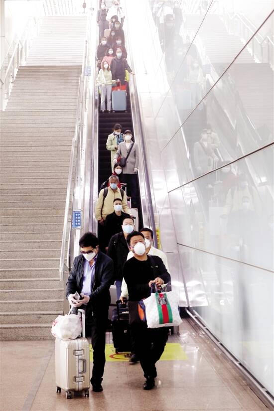 “最想做的事情就是回家” 从4月8日零时起,武汉市解除离汉离鄂通道管控措施。武汉地区武昌站、武汉站、汉口站等火车站重新开启进站通道,恢复办理旅客进站客运业务,旅客持健康码“绿码”经测量体温、身份核验后可乘车出行。昨天12时19分,G1005次列车提前5分钟抵达广州南站,332名来自武汉的旅客同样心急着想早点回到家。这是1月23日离汉通道暂时关闭以来,第一趟由武汉始发到达广州南站的列车。据了解,昨天共有34趟高铁列车从武汉站来到广州南站,抵达旅客约有3200人。 “我现在最想做的事情是回家,然后开始工作!”1月21日到武汉的周女士一家三口昨天回到了广州。昨天零时,她在家里听到外面汽笛长鸣的那一刻很激动,没想到自己买到的高铁票就是昨天武汉到达广州的第一趟车。她已经在广东生活了二十多年,这次回武汉探亲想不到就待了78天。“这么多天真的很不容易,真是一个超长的探亲假期!很庆幸我的家人朋友们全都平安,这就是最好的事情,其他事情都是次要的。经历了这次之后,觉得健康最重要!”这次疫情中,她切身感受到了全国人民对武汉的帮助,“多亏了全国人民的支援,才让我们可以挺过来。我在家里办公也体会到了这一点,我的同事们这段时间都帮了我很多。” 新快报记者在广州南站站台看到,从高铁上下来的部分旅客穿戴着雨衣手套防护眼镜口罩,部分人甚至穿着从头包到脚的防护服,也有人只是戴着双层口罩加手套。搭乘G1005次列车的吴小姐可算做足了防护措施,穿着一件白色防护服,口罩手套和护目镜一应俱全。她告诉新快报记者,她是在广州上班的武汉人,之前回家探亲让她留在了武汉两个多月。“听到可以出武汉的消息,赶紧提前五天买好了车票,因为还要回广州上班。”谈起顺利抵穗,吴小姐说,这次经历让她非常感慨,“疫情发生后,看到全国各地医护人员赶来帮助武汉,令人感动,感谢大家!” 同样是在广州工作的李小姐过年前回武汉探亲,之后的七十多天一直在家。重新坐上高铁回到广州,让她最高兴的是这次武汉挺过来了,很感恩。“医护人员付出了很多。我这次坐高铁除了口罩手套和护目镜之外,还穿了一件雨衣。只在车上4个多小时就非常难受了,感到闷热得不行,可想而知医护人员穿着防护服工作一整天是有多么不易。”在这次疫情期间,她还感受到一方有难八方支援的互助精神。身在武汉的她收到了很多外地朋友的慰问,很多朋友都关心她的情况,令她十分感动。 老广滞留武汉时想家想饮早茶 昨天是在武汉的黄女士从1月23日之后第一次出门,这次她要到武汉站坐高铁,想到终于能回到广州了,心里面感慨万千。“我在武汉天天盼着能坐上高铁回广州,这天终于来到了,好激动!”广州人黄女士出站后高兴地对新快报记者说,“我在武汉的日子久到自己都不记得了,很想念广州,最想念的是广州的茶楼点心。” 黄女士说,这次过年是去武汉探望朋友,没想到滞留下来了。作为广州人,在武汉期间最不习惯的就是在吃的方面。在武汉这些日子吃得非常简单,很多时候是猪肉加白饭。”跟黄女士有相同想法的旅客还有不少,从武汉回来的陈先生就说最想去吃煲仔饭。 由于疫情的缘故,黄女士一直就留在朋友家里,平时也没什么可做的,都是靠玩手机和睡觉打发时间。“睡到人都傻了。过年时想着一个人留在武汉,让家里人担心,自己也有点难过。但这也是没办法的事情,只好当给自己放了个长假啰。”黄女士说,在广州的家人很担心她,她也非常想念家人,特别是留在家里11岁的女儿和8岁的儿子。滞留武汉的日子里,她天天跟家里人视频报平安,这次回到家,首先要跟家人说一句“平安回来啦!” 得知4月8日零时起,武汉市解除离汉离鄂通道管控措施,黄女士早早就买好了高铁票,数着日子等着回家的一天。她告诉新快报记者,虽然坐高铁前也专门找来防护服穿上,但一路过来,觉得武汉火车站和高铁列车上都很安全。车上旅客都很期待能够回家。她表示,回来后会先进行14天的自我隔离再去上班。 ■采写:新快报记者 许力夫 ■摄影:新快报记者 毕志毅