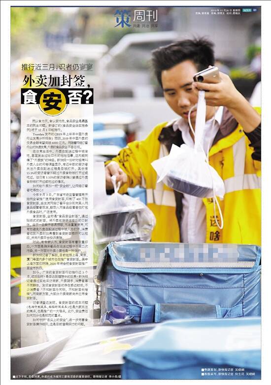 本期“策回响”落子此前两期报道。一是4月1日正式实施的交通运输部地铁新规,明令禁止地铁上进食或外放声音,“禁食令”“禁声令”在广州的实施效果如何?另一个是受疫情影响,被誉为外卖“安全锁”的食安封签的使用需求更为凸显,自去年9月广东省市场监督局推出首批后,在提倡“无接触配送”服务的当下,是否更吃香? 新快报记者发现,早在去年年底,广州即正式实施《广州市城市轨道交通乘客守则》(下称《守则》),其中明确了禁食、禁外放。但有关进食,政策解读时表示,若乘客因赶时间、肚子饿等原因确有进食意愿,可选择在列车外,在尽量不影响他人的环境下进食。 回响1:地铁“禁食”“禁外放”已在穗实施三个月 乘客对人性化“禁食令”规定表示理解 去年10月,交通运输部公布《城市轨道交通客运组织与服务管理办法》(下称《办法》),明确了影响秩序的7类约束性行为,其中“使用电子设备时外放声音”、“在列车内进食(婴儿、病人除外)”引发网友热议。新快报《策周刊》于同年10月31日进行报道,广州当时有关规定仅禁食刺激气味食品。于去年年底实施的《守则》,则与《办法》“接轨”,明确了“禁食”“禁外放”,但实施3个多月,广州市民反映变化并不大。 规定 “禁外放”为避免公共安全隐患 《办法》从4月1日起正式实施,明确了影响乘客运营安全的10类禁止性行为,以及影响秩序的7类约束性行为,其中包括禁止使用电子设备时外放声音、在列车内进食(婴儿、病人除外)等。 去年10月,《办法》公布1个多月后,2019年12月25日《守则》正式实施。市交通运输局在对政策进行解读时,明确将原规定的“禁止食用有刺激性气味的食品”修改为“禁止在列车内进食(婴儿、病人除外)”,主要是由于地铁车厢相对密封、人流量较大、空气流通性较差等环境情况,食物气味容易放大,食物残渣也影响车容,在列车内进食易对其他乘客造成困扰,且不同乘客对于刺激性气味食物的主观认定不同,实际发生时易造成乘客纠纷。因此,在充分考虑部分乘客(如低血糖患者、肠胃病患者、婴幼儿等特殊乘客需要通过进食缓解不适)有实际进食需求后作出修改。 令人关注的是,市交通运输局表示,若乘客因赶时间、肚子饿等原因确有进食意愿,可选择在列车外,在尽量不影响他人的环境下进食。 至于“禁放令”的提出,该局则认为,由于在地铁车站、车厢内会播放到站服务指引、应急广播等语音信息,如果乘客大声喧哗、弹奏乐器或使用电子设备时外放声音,将会干扰和影响其他乘客清晰听取相关指引广播信息,以及在应急情况下的快速反应,存在公共安全隐患。 走访 疫情带来地铁上难得的“清静” 根据《守则》,相关规定自印发之日起施行,有效期五年。换言之,地铁“禁食”“禁外放”在广州已经实施了3个多月。效果如何? 4月7日下午,新快报记者在地铁3号线和1号线上见到,由于乘客都戴着口罩,车厢里比平常安静了不少,部分人开着手机扬声器看短视频,但也把音量调得很低,声音完全被列车与铁轨之间摩擦的轰鸣声淹没,有中年乘客大声交谈、讲电话,旁若无人。 有乘客带了奶茶、包子,但都拿在手上,没有开食。而在体育西路地铁站的候车台上,人来人往,两名乘客坐在椅上,摘下了口罩,一边吃着蛋挞,一边交谈。 新快报记者随机采访了多名地铁乘客,大多数表示相比地铁进食,更反感的是公放视频、大声喧哗等行为,并期望乘客能提高自身素质。“在一个安静的环境里,被迫听一些洗脑‘神曲’或魔性的笑声,尤其是地铁上没有座位、没办法挪动的时候,会感觉很烦躁。”乘客小婉对公放视频行为大为反感。她表示,可能受疫情影响,最近地铁中不文明行为有所减少,“一般是上了年纪的人喜欢开扬声器听语音、看视频,在年轻人当中,这些行为比较少见。” 对于广州人性化的“禁食令”,部分乘客表示理解支持。“早高峰的时候,很多人来不及吃早餐,会在地铁里吃个包子、喝个豆浆,其实能够理解。”搭乘3号线通勤的上班族小李表示,只要没有太大的气味就可以了。 回响2:疫情期间提倡“无接触配送”服务 使用食安封签商家比例有所上升 受疫情影响,包括广东在内的多地均提倡外卖“无接触配送”服务。作为网络订餐的一道“安全锁”,新快报记者走访发现,疫情期间,商家使用食安封签或类似作用措施的比例有所上升,但也有外卖小哥坦言,由于不少外卖放在小区门口,封签的作用从原本的“防小哥”变成如今的“防路人”。有专家表示,结合疫情防控背景,将外卖封签纳入标准当中,有助于外卖安全。 走访 封签作用从“防小哥”变成“防路人” 去年9月,广东省市场监督管理局开始向全省推广使用食安封签,印制了400万张食安封签,由主流网络订餐平台分别向其入网食品经营者派发,鼓励入网食品经营者在打包外卖食品时,广泛使用。同年11月28日,新快报《策周刊》推出《外卖加封签,食安否?》专题报道。 在此前的专题报道中,数据显示,有15.5%的受访者称自己曾怀疑过外卖食物被打开过或吃过,仅有1.6%确认自己曾遇过外卖食物被打开过或吃过。一旦撕毁,无法复原,食安封签的“特质”亦赋予其“安全锁”的功能,旨在避免外卖配送过程中被人为打开。 受疫情影响,广东提倡“无接触配送”服务,有不少小区在门口安放了临时放置点,外卖小哥可将餐品放在架子