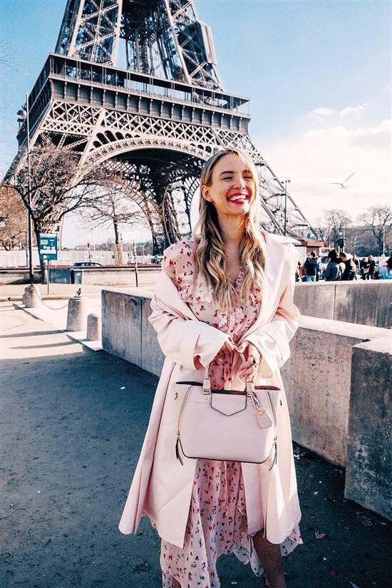 ■新快报记者 梁彧/文(资料图片) Focus A All Pink“樱”气十足 与其它粉嫩色系对比,樱花粉中混入了偏白的色调,即使All Pink也不会显得皮肤黑黄,对不同肤色的Chic Girl来说都比较友好。浅浅淡淡的色调,非常适合彰显女性的淡雅柔美气质,让粉色留在大家过往既定印象里的“幼齿”感消失无踪。 当优雅半裙披上樱花粉,轻盈的效果便脱颖而出,即使不是All Pink,只需上装的搭配也浅色或清新色,让整体造型更显融合,也能打造出像All Pink一般的“樱”气十足范儿。 Focus B 跳跃色彩怦然心动 相比与黑白灰这样的安全牌色彩搭配,更推荐将樱花粉与其它更跳跃的颜色配在一起,因为它看似存在感不强,但当樱花粉与一众跳跃色彩在一起的时候,往往你一眼就会被这淡雅柔美的粉色所击中。 与红色搭,粉色的温柔和红色的热烈看似猛烈碰撞却因同色系而格外和谐;与绿色配,尤其是上一季火出圈儿的牛油果绿,那与樱花粉相似的细软质地和温润色泽,仿佛组成未盛开的花蕾,充满着梦幻浪漫。 Focus C 加点印花更显活力 与印花结合,柔和的樱花粉还能担当“画纸”的作用,让春日的活力有“跃然纸上”的感觉。碎花、刺绣、格纹,都是流行且能和樱花粉很好结合的印花元素。 以近年流行的格纹为例,穿不好很容易显老,但只要将樱花粉换成格纹的底色,就能立马轻快起来。