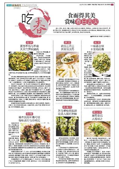 ■新快报记者 陈斌/文(资料图片) 春笋 要想不俗与不瘦 天天竹笋焖猪肉 加豆之实,笋菹鱼醢;其籁伊何,惟笋及蒲…… 笋这种东西,一年四季都有,但唯独冬春两季的笋为最佳,冬笋不出头,埋在地下;春笋却冒尖儿,也恰如其分地成为春来万物生的代言。 吃笋的习俗在我们中国人的餐桌上由来已久,怕是有着两三千年的历史了,作为菜中珍品,笋也的确不负众望,各种笋类都能给予人们不同的味蕾感受。 好比佛山南海桂城林岳地区的吊丝丹笋,是多少老饕们每年趋之若鹜的美味呀!当然,这种笋应当归于夏笋,每年5月份之后至7、8月间得见,也是奇了,这种笋水分足,味清甜,尤其是冰镇了吃,简直如同吃水果一般,一点渣滓都没有,一点涩口的感觉都没有,怎么做都好吃。 因为竹子的品类不一样,所以笋子的形象也不同,通常我们概念当中一想到春笋,大多头脑中闪现出的是剥出来白白胖胖那种,但也同样有细细长长的“黄金笋”,剥这种笋的手势很有趣,从笋尖头上撕开一点外皮,绕在手指头上一直绕一直绕,整个外衣就被剥下来了,手上拿着的便也成了白白净净的芯儿,切成小段后用来素炒或与肉炒都好吃,脆脆微甜的口感。也可以稍事腌制,做成酸笋,用来与青辣椒同炒,异常开胃。 笋的吃法很多,江浙一带春天当造时令菜腌笃鲜,便是春笋唱主角的汤菜。腌,指的是咸肉或火腿;笃,方言的意思可以理解为炖煮;鲜,自然是强调春笋这一鲜味,小火慢炖,看肉与笋在一锅汤当中缠绵交融,端的是春天里缱绻的现实写真。 家庭家常处理手法通常以炒或油焖为主,相对比较简便,用唐宋八大家之一的大吃货苏轼的说法:人瘦尚可肥,士俗不可医,要想不俗与不瘦,天天竹笋焖猪肉,走起! 荠菜 农历三月三 荠菜当灵丹 清明前后,是荠菜的最佳时节,作为一种野生植物,荠菜被我们耳熟能详,全赖用它做馅儿包的饺子、包子、大馄饨等等,也是吃其浓郁气息的一种春菜,有语曰“三月三,荠菜当灵丹”,也点明了吃荠菜的最佳时间线。 常见吃法都是用于与肉馅搭配成为馅料,而少见整棵菜直接下锅烹之的,同样是开水焯过剁碎成馅包之,不过现在感觉一年到头都能在街上那些卖上海馄饨的铺子里见到荠菜馄饨的踪影,倒让我不禁诧异这季节性是如何被克服和忽略的。 韭菜 一畦春韭绿 十里稻花香 春食韭则香,这意思明明白白,要吃韭菜,就要吃春韭,号称“养肝菜”之首。 韭菜这种植物,是割一茬儿长一茬儿,也难怪身边炒股投机的人自嘲是韭菜朝朝被人割,韭菜有春香、夏辣、秋苦、冬甜之说,春韭的鲜嫩自不必多说,经历了一整个大约在冬季的洗礼,储藏了大量养分在根与茎上。 家常韭菜吃法大多炒就可以了,韭菜炒鸡蛋,也属于标配CP,据说在河北曲阳,还有一味韭菜鸡蛋炒烧饼的特色菜,是用当地薄酥香脆的缸炉烧饼来烹制的,吃起来想必别有一番风味了。 清明前后河鲜上市,韭菜与河虾同样是绝配之一,大火快速兜爆翻炒,及时起锅装盘,大快朵颐便是。 制成馅料包饺子、包包子、烙馅饼也是春韭的好去处,喜欢素淡口味的继续韭菜鸡蛋配,喜欢荤腥的配点新鲜土猪肉,趁春光正好,趁春韭正鲜,这一茬新绿的美,信手拈来。 禾雀花 万鸟栖枝欲振翅 花朵入馔巧烹鲜 因花朵成串形似小鸟而得名,神形兼备,每年清明前后是盛花季,开得旺盛的禾雀花层层叠叠,如连串小胖鸟在枝头欲振翅高飞,花团锦簇,实在令见者欣喜。 广东很多地方可以观赏到禾雀花,本也是春日出游的主题活动之一,粉色、米黄色、白色、紫色等花色较为常见,禾雀花除了观赏,也可入馔,通常用浅色新鲜的花朵,可以椒盐炸酥脆来吃,也可以晒干了煲汤。 用禾雀花泡水喝清热利肺,它的藤据说更有药用价值,主要作用是舒筋活血,坊间有用于女性经期痛的偏方。 香椿 椿木实而叶香可啖 每年此时与你相见 每每见到市面上开始露出这种叶厚芽嫩、绿色红边,带着特别气息的一把叶子时,便知道春天妥妥地来了…… 说是旧时称香椿为椿,臭椿为樗(“出”音),比喻无用之才,也用于自谦之意。然即便是香椿,因其独特的气味,其实也一样是爱的人爱,不喜的人一眼都不愿意看,世间万物,果真都自有它对应的磁场,勉强不得,还有像香菜、茼蒿等等气味比较鲜明的叶菜,也同样是泾渭分明地被爱与恨切割成楚河汉界。 香椿吃前要用水焯一下,以去一去所含的亚硝酸盐,然后配以豆腐的话,那下场就是凉拌,春天的滋味便在香椿拌豆腐的倩影中齿颊留香余味绕梁;倘若遭遇了鸡蛋,那就一炒惊天下,如大朵盛开的蓬花,在油锅中绽放,椿蛋之恋的鲜嫩,就当是一场梦,醒了很久还是很感动…… 吃香椿要赶早,过了谷雨就没这趟儿了,并且作为一种并未被实施广泛人工种植的蔬菜,数量十分有限,喜欢吃这一口的,没有香椿的春天,似乎缺了点什么。 蒲公英 草药皇后 人皆啖之 蒲公草,叶似苦苣,花黄,断有白汁,人皆啖之——这是《唐本草》上对蒲公英的描述,一想到蒲公英,脑海中总是不自觉地冒出“我有一颗蒲公英的种子”这样一句,就好像顾城那句“我们站着,不说话,就很美好”,不知道为什么就根植于脑海,一遇到合适的时机,它们就自动自觉地显现出来…… 知道蒲公英又叫婆婆丁,是某一年春日在贵州驻点,早春的嫩蒲公英,或炒或汤或炝拌,略带一丝苦气,但凡是带苦的菜,都有清热毒之用,我倒还蛮喜欢略吃些苦的。洗好的蒲公英同样要焯一下,沥干过一下凉水,然后油