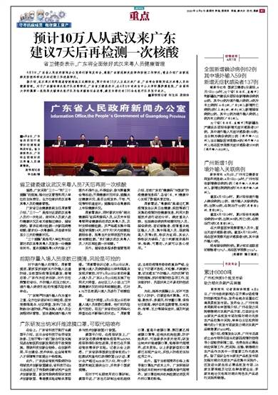 预计10万人从武汉来广东 建议7天后再检测一次核酸