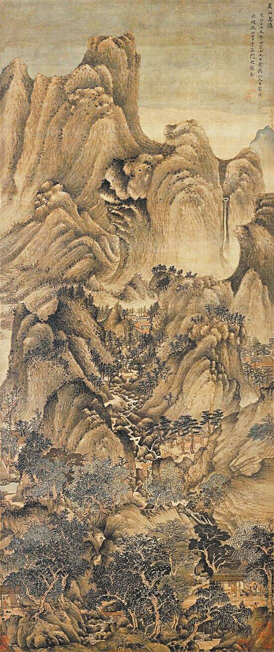 《夏山高隐图》轴 王蒙 (元) 绢本,设色, 纵149厘米,横63.5厘米 |