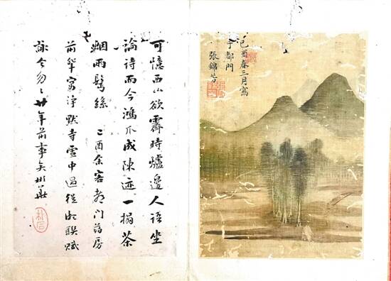 岭南偏于一隅,气候、语言、饮食、风俗等与北方不同,岭南人不甚愿意在岭表以外供职和寓居,即使取得功名或任职,时间都不会太长久,便以事亲为由,辞职返乡从事文化教育事业和参与地方乡绅事务。 张锦芳(1747―1793),字粲夫,一字花田,号药房,别署曲江山人、曲江外史。顺德人。生性恬淡,淹贯群籍,精通《说文》之学。 张锦芳以学问、诗词赋咏、书画与黎简、黄丹书、吕坚并称“岭南四家”,尤以孝友更为世人称道。 张锦芳从赴考、授翰林编修到返粤,寓京只有几年的时间,海内外名士及同乡竞相与之结交。他刚抵京师,纪晓岚、钱大昕(辛楣)等名士争着热情迎接,倒屣相迎。同乡胡亦常、冯敏昌、刘彬华等人也与他过从,成为好友。乾隆五十五年(1790),他得知兄长病逝的消息,悲伤不已,乞假离京返乡。三年后,即乾隆五十八年(1793)病逝,享年四十六。 张锦芳与刘彬华的交谊有实物为证。无聊斋庋藏他们的册页,共两开(折叠合页),绢本,一页是张锦芳一件罕见而精致的山水小品,另一页为故物主人刘彬华的小行楷题诗和题跋。张锦芳赠送山水画给刘彬华是古时文人交谊的重要信物。 页一、山水小品。款署:“己酉春三月写于都门,张锦芳。”钤:“张锦芳”白文印,款字引首钤:“张叔子”朱文印。画面由近山、远山、树林和小桥流水构成,笔墨技巧,通达谙练。崇山峻岭运用没骨法,远山隐约其中,树木成林,叶针运以横锋写意,皴点多用焦墨,苍润秀劲,水河澹澹,独桥无人踪,意境清幽,气韵逼真米元章、梅道人。 张锦芳珍藏的书画和旧物胜过自己的生命。他从京返粤,乘船途经江西时,遇险覆舟,两手急持王冕的墨梅及旧端砚,置生命于度外。他楷书取法钟、王、赵、董,行草法右军,隶书取法《礼器》诸碑;绘画以山水、花草、兰竹著称,山水取米芾、恽南田法,梅花法王冕、吴仲圭。流传多为花卉,写山水罕见。刘彬华行楷题诗跋:“可忆西山欲霁时,炉边人语坐论诗;鸿爪成陈迹,一榻茶烟雨髩丝……”下钤:“朴石”椭圆朱文印。 两页的落款时间均为己酉年,即乾隆五十四年(1789),刘彬华题跋的时间是同一年。这一年,张锦芳刚好在京城会试,中试进士,授翰林院编修,寄住位于西山的净默寺里。刘彬华当年也赴京城参加考试,却没有考中,十二年后(1801)才金榜题名。有一天,西山的大雪将要停止,刘彬华冒着寒风雪前去净默寺拜访同乡前辈张锦芳,得到他的热情款待,两人促膝在炉边取暖,席间,一边品茗论诗,一边“颇联赋咏”,相与甚欢。临别时,张锦芳赠山水小品一帧,以作纪念。 刘彬华性情清淡,不乐仕进,与前辈张锦芳颇为相近,嘉庆十四年(1809),张锦芳已经作古十余年,岁月匆忙急促,他不觉已步入了暮年,睹物思故人,感慨万千,好友赠送的故物,已成陈迹,惜往日的相聚,历历在目前,因题诗一首,记录他们相交相知的点点滴滴。 刘彬华,字藻林,一字朴石。番禺人。嘉庆六年(1801) 成进士,授翰林院编修,不久告假返乡,先后讲学端溪、越华书院,从此不再入都。他热忱文化教育和公益事业,如省城浚六脉渠,设恤嫠会,修《通志》,修贡院诸大事,地方大吏都咨访他。而他为人低调,不事张扬, 遗嘱不鼓乐、不买水、不作法事,毋刻行状,毋撰墓志,毋刻诗文集。 刘彬华也是乾嘉年间著名的学者、诗人、书画家。此册小行楷宗法钟繇、二王,取自元常之高古,又有右军之逸致。他亦能绘画,鲜有画作流传。 汪兆镛撰写岭南第一部美术史的《岭南画征略》,都评述了张锦芳和刘彬华的书画,他们在今天,也不为书画界学者所重,实为憾事。