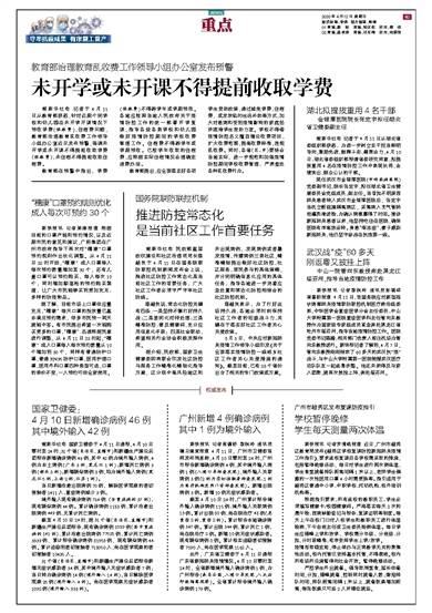 国家卫健委: 4月10日新增确诊病例46例 其中境外输入42例