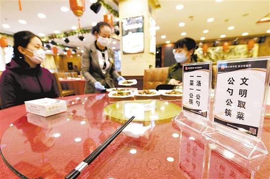 ■4月13日,石家庄市桥西区一家餐厅外挂出公筷公勺宣传电子海报。疫情过后,人们饮食和消费习惯可能发生改变。新华社发 |