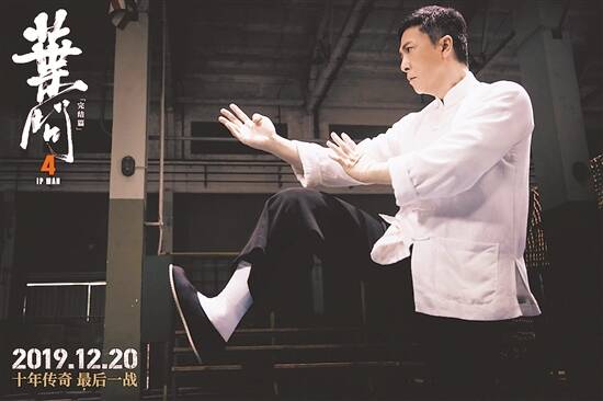 兼具情怀与动作的“叶问”系列电影,将叶问的一生呈现给了观众。甄子丹恰到好处平衡了文戏和武戏,叶问卓绝的武艺、为人之道、谦虚有礼的君子风范令人印象深刻。《叶问4》与观众做了一次告别。因为得了癌症,叶问来到了美国唐人街试图为儿子铺好后续之路,意外卷入一场当地军方势力与华人武馆的纠纷,面对日益猖狂的民族歧视与压迫,叶问挺身而出,在美国海军陆战队军营拼死一战,以正宗咏春,向世界证明了中国功夫。而在生命的最后阶段,叶问与李小龙的这段师生之前也有所展现。 收尾之作,《叶问4》在动作设计上将力量与美感相结合,让观众在赏心悦目的武术较量之中,充满了民族的自豪感。电影上映后,全球掀起了“叶问热”。 《叶问4》在2019年12月20日内地上映之后,票房累计11.81亿元。同时,海外市场依然卖得火爆,在全球知名的影评网站烂番茄上至今维持着相当高的热度,“烂番茄新鲜度”达到90%,“观众爆米花”更是高达95%。《叶问4》已经跻身新加坡去年所有电影票房排行的前十名,而在马来西亚成为历史上票房最高的中国电影。海外市场的成就,让《叶问4》稳坐2019年中国电影海外票房冠军。2020年,《叶问4》的势头还是很猛,据相关数据显示,上两个周末,《叶问4》均是韩国周末票房冠军,连续4天位居韩国票房第一。