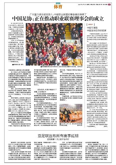 新快报讯 记者王敌报道 北京时间昨天下午,亚足联正式宣布,旗下所有赛事的5月和6月赛程都要延期,这意味着亚冠联赛、世界杯预选赛等各项赛事在短期内都不会开打。