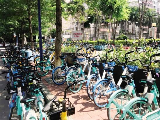 天河区棠东东路,数百辆共享单车占满盲道。 ▲ |