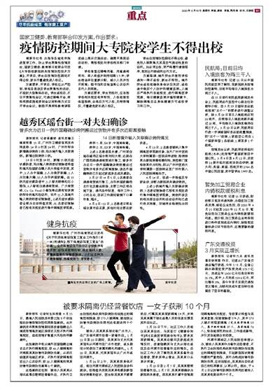 据新华社电 为指导各地有序推进复学工作,防止学生聚集性疫情发生,国家卫健委、教育部日前联合印发《大专院校新冠肺炎疫情防控技术方案》,开学后,学生在疫情防控期间不得出校,家长尽量避免进入校