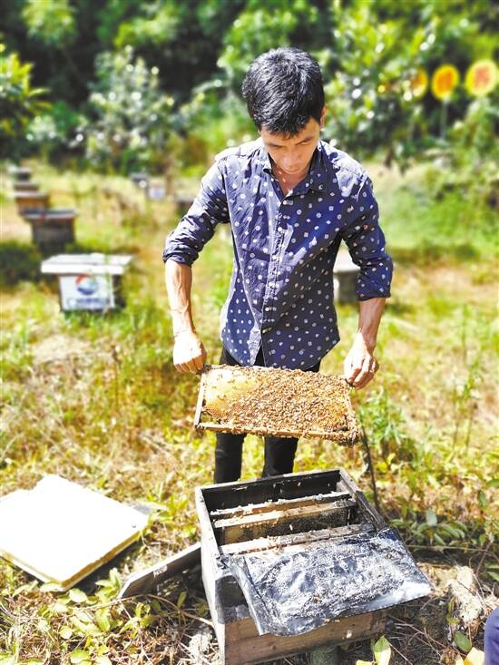 ■采写:新快报记者 严蓉 ■图片:由受访者提供 脱贫路一波三折 扶贫工作队保驾护航 周扬新已过不惑之年,是一家七口人的顶梁柱。以前,他在村子周边打散工,一家的人均年收入还不到3000元,家里的房子破烂不堪成了危房。2016年5月,广州港集团对口帮扶麻蕉村,周扬新是建档立卡的贫困户之一。 在精准扶贫的摸查过程中,驻村扶贫工作队了解到,周扬新有非常强烈的创业意愿,尤其对于养蜂业颇有心得,却碍于没有启动资金,迟迟没有发展。 2016年底,驻村工作队决定在有丰富鸭脚木自然资源的麻蕉村发展养蜂业,帮助贫困户自主脱贫,并选中周扬新作为养蜂试点户,帮他申请了50箱蜜蜂作为启动资源。“每年春天,周扬新都和妻子一起到从化赶蜂,一待就是3个月。”麻蕉村驻村第一书记王勇明说,周扬新非常勤快,但欠缺技术。得知这一情况,扶贫工作队邀请广东省养蜂协会理事长罗岳雄来到麻蕉村开展养蜂知识培训,给予专业指导,解决了周扬新存在的技术难题。经过一年多的努力,周扬新将50箱蜜蜂发展到150箱,年产值达十多万元,2018年家庭总收入达到了12万元,成为麻蕉村第一批脱贫的人。 不料,2019年3月发生了一次蜜蜂意外死亡事件,几乎将周扬新再次打入生活谷底。“不知道什么原因,刚赶蜂到从化不久,蜜蜂就相继死亡,短短3天,100多箱蜜蜂只剩下30箱。”王勇明说,这个变故让周扬新大受打击。在了解到具体情况后,扶贫工作队多次到从化看望慰问周扬新,并开导鼓励他,帮他重拾信心。在扶贫工作队和广州港集团相关领导的关怀鼓励下,周扬新很快消除了顾虑。在其他赶蜂同行已纷纷撤离的情况下,他重整旗鼓,带着仅剩的30箱蜜蜂再出发,换了一个能确保蜜蜂安全的地方后继续耕耘。功夫不负有心人,3个月后,他将蜂群规模扩大到了103箱,还成功采集了1500多斤春蜜。 打造“美丽蜂场” 要带动村民共同致富 如今,周扬新的养蜂事业如火如荼,他家的人均年支配收入达到1.67万元,4年不到翻了5倍。2019年,在政府和广州港集团的支持帮助下,周扬新新盖起了一座两层的小楼房,一家人欢天喜地搬进了漂亮的“乡村小别墅”。 安居乐业之后,周扬新没有忘记自己是怎么脱贫的。“去年底,我们投入3万多元,将周扬新的蜂场打造成兼具养殖中华蜂和进行养蜂技术培训的‘美丽蜂场’。今后,养蜂将不只是他一个人的事业,他作为致富带头人,要培养出更多职业养蜂人,带领大伙一起致富!”王勇明说,今年3月底,大家组织了第一次养蜂人交流会,周扬新向大家传授养蜂经验,大家都收获颇丰。 不仅如此,周扬新还教育自己的儿女,要懂得感恩,学有所成之后要回报社会、回报村里。“周扬新的大女儿周紫晴大学毕业后,本来找了一份不错的工作,后来听说村子要建农村综合服务站,就主动请缨回村做服务站的站长。”王勇明说,服务站是扶贫工作队今年要打造的一个重点扶贫项目,通过搭建电商平台销售村子里的农产品,同时还将承担技能培训、信息共享的功能。目前,服务站还在初步阶段,事情多报酬少,周紫晴却乐此不疲。“我们家是在精准扶贫的帮扶下才彻底改变了生活,现在我也要尽我所能去帮助别人。”周紫晴说。