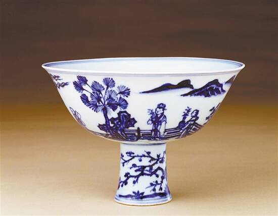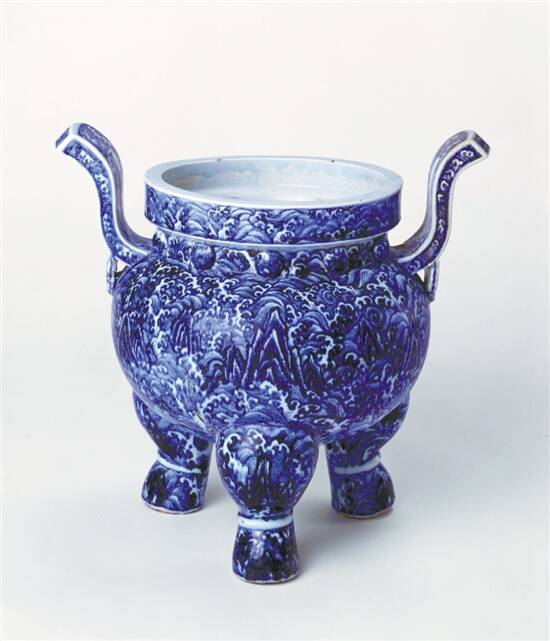 影落明湖青黛光,百般红紫斗芳菲,瓷器自诞生之日起,绵延不断的是以色诱人。不管是南之越还是北之邢,大片的素色,风行着整个唐代。直至当朝长沙窑打破了青白瓷格局,始为我们呈现出最早的陶瓷山水纹作品。 ■收藏周刊记者 潘玮倩 显山露水,始现于唐 1 今天,在湖南省考古研究所,藏有一尊青釉褐绿彩山水纹罐,腹部褐绿彩绘出起伏层叠的山峦,群鸟飞于其上,一株螺旋而上的抽象树形,以清静疏朗,与对面的动态繁茂,作均衡对望。如果我们将这种景致,和隋朝展子虔的《游春图》对比,就会发现山型的横向罗列和纵向积压,十分相似;而且它们的笔法和轮廓线都是融为一体。时期接近的两样不同材质作品,出现类似的艺术呈现,不能说是一种偶然,乃是体现当时艺术审美一致的不同佐证。 隋唐的山水纹瓷器,和这个时期的山水画一样,存世有限。而在宋代官窑之中,汝官哥钧定,虽然占据着高古瓷器不可逾越的高峰,但它们也是以颜色为最重要表现手法。 大量的纹饰图案,出现在民间的磁州窑。然而和山水画在有宋一代的发达相比,瓷纹上的山水依然姗姗来迟,磁州窑上的纹饰多为动植物和人物等。直至金。 唐诗宋词元曲,金人兼收并蓄,“词也咏,歌也唱,悠然自得”。金元之际,许是因为越来越丰茂的领地和物质生活所致,一种长方形的大瓷枕出现了,而在这样宽阔的平面上,十分适宜绘制山水。 枕着山水入眠听起来十分让人向往。藏于故宫的一款磁州窑白地黑花人物纹枕,白地黑花,枕面微凹,中心为开光山水人物纹,云雾缭绕的群山之中,仙府洞开,一队仙女似在欢迎来访的二人。布局合理,疏密有致,山水作为故事的背衬,在宋金元时期,也许仅见于磁州窑的瓷枕。选择最贴身最密不可分的这类器物来刻画山水,冥冥之中,流露出古人对于天地山川的依赖和深情。 元青花的山水元素几近于无 2 宋代文人山水位于艺术的顶峰,它的影响力,稍加时日辐射至生活用品,十分自然。这种自上而下、自高端到民俗的覆盖,到了元代,戛然而止。元青花上,很少见到山水题材,就算是著名的萧何月下追韩信梅瓶,山水元素也几近于无。 元代的文人与他们的前辈经历了天壤之别的待遇,他们被赶出了宫廷,失去了确定趣味标准的权利,也不再能调弹庙堂之上的高雅曲调。宫廷艺术,由工匠接手。画竹的艺术在当时独立成科,是文人的一种不能明说的倔强,虽然可以弯曲,但不易折断。大批的“艺术家”成为隐士,山水让他们成为隐士和逸士,但同时也阻断了这种艺术向民俗和瓷器方面的流动。 直到明初,才“在景德镇的瓷器作品中偶见有山水纹的”。根据马未都所著《瓷之纹》一书中,介绍了曾在安徽省博物馆展出的元末明初釉里红祈雨图罐,“通观纹饰,其制作年代可能晚至明初。此罐四面开光,绘制山水,细辨其山水与传统绘画山水大为不同,画面并不含蓄,表达意图十分明显,为民间久旱祈雨,祈求风调雨顺、五谷丰登的民俗作品。四开光如同连环画形式,将天降旱灾、祈雨求福、天龙施雨、雨润万物的过程图释化,寄托了先民对自然的敬畏之心。这类作品,说它是山水纹有些勉强了,它只是民间俚俗风情的写照而已”。 郁苍苍的景色和苏麻离青相衬 3 明朝第五代皇帝朱瞻基,是一位书画家。宣德一朝的瓷器,“开一代未有之奇”,达到历代青花烧制技术的最高峰,《景德镇陶录》就评价宣德瓷器:“诸料悉精,青花最贵。” 这个时候出现了非常适宜在瓷器上描绘山水的青花原料——苏麻离青,据说是明永乐年间,郑和七次下西洋从伊拉克萨马拉地区带回的,也有一种说法是,它是英文smalt的译音,意为一种蓝玻璃。苏麻离青有一种重要的特征:晕散。它出现晕散的机理机制,尚不清楚,但与釉层有一定的关系。而晕散,则非常适合用于表现山水。 那些“五冈宛转郁苍苍”的景色,和苏麻离青的晕散再契合不过,纵横的笔意和蒸腾的云霞,让一切在瓷器上灵动无比。一件具有代表性的“代表器形”的物件,是藏于故宫的永宣时期青花海水纹香炉,其高55.5厘米,口径37.3厘米,足距38厘米;内施白釉,外壁通体绘海水江崖纹;形体硕大,青花色泽浓艳,晕散明显,凝结的黑斑密布于纹饰中。纹饰寓意江山永固。能够烧造如此有气魄、纹饰精美的瓷器,反映出当时景德镇窑工高超的制瓷技艺。 不过,宣德一朝的青花瓷上,纯粹的山水作品依然不多,“它没有一件作品完全彻底表现山水画意图,只是把山水作为背景,陪衬近景的亭台楼阁,让人们在漫步闲坐时可以气定神闲地远望”(马未都语)。 比如这件宣德青花人物纹高足碗,同样藏于故宫,碗内口绘青花双线,内底中央青花双圈内楷书“大明宣德年制”六字款;碗外壁绘仕女赏月图,一童子侍于侧,辅以山水树石,并绘有云气纹。足柄上绘松竹梅纹。 远山的朦胧效果,在青料的晕散中浑然天成,并且此碗青色淡雅,仕女和童子的纹饰比较清晰,实为难得。因为,反而思之,苏麻离青的晕散特性并不擅用于人物细微之处的描绘。因此更可见此器的难得。 明末“良工亦得丹青理” 4 然而,从宣德至明晚期天启年间的近二百年,根据马未都的研究,却是又“销声匿迹”。“令人不解的是,二百年期间能想见的各类纹饰都在瓷器上出现过,而山水的天地不知为何都还给了画家。工匠与画家似乎保持着一条泾渭分明的界线,从未跨过一步。” 直到天启时期。晚明世态炎凉,而天高云淡越