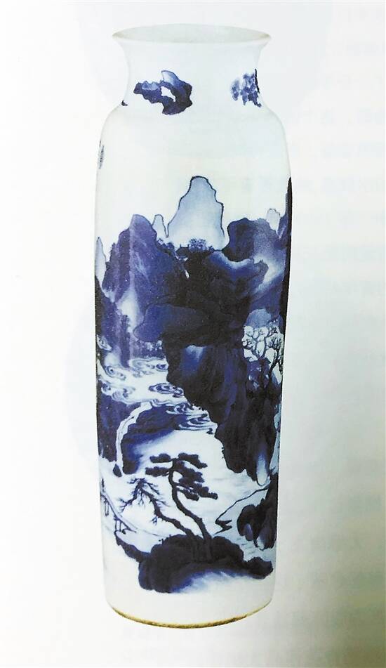 ■清顺治十年 青花山水纹筒瓶 上海博物馆藏 《瓷之纹》供图 |