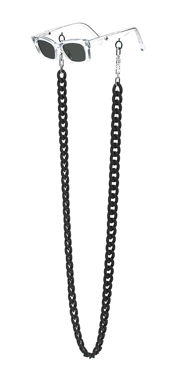 GENTLE MONSTER × JENNIE 眼镜链 主体为亚克力黑色链条,装饰以大气的JENNIE字母银色链条,演绎出尖端时尚感,打造眼镜与饰品相结合的全新活力造型。 |
