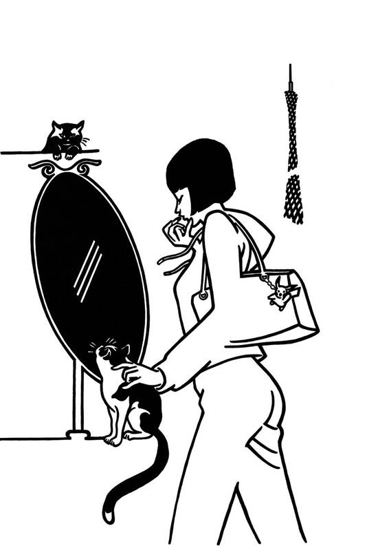 《麦田里的守望者》作者塞林格说:“记住该记住的,忘记该忘记的。改变能改变的,接受不能改变的。”这句话对我影响至深,记住、忘记、改变、接受,构成自己人生的基本态度。 《极简少女》系列正是此间的创作,我想通过简约的人物与画面,表达对这个世界的凝视与探寻,希望笔触所及,带给人以孤独的美感——旅行在路上的女孩,脚蹬白鞋、背包上挂着日漫玩偶,看似无忧无虑,却在眉宇之间隐藏着小小的寂寞与无奈。透过旗袍挽髻的恬静,短裙高跟的活泼,凝聚绘者的一份天真与用心。 《极简少女》追求抒情意味,延续了我个人绘画的文学性与叙事意味,展现想象力。这一系列作品刻意强调平面装饰语言,追求设计美感,在传统线描基础上,大胆吸纳了日本和欧洲用线之所长,力求呈现中西合璧的艺术效果,并且在画法上融合了新媒体的某些特征。不过万变不离其宗,其灵魂仍然是线条,用线有机融合了中西不同的笔法,黑色既是轮廓线,又有阴影的感觉,具有传统白描勾勒轮廓和西方塑造空间的双重功效。 “ 《麦田里的守望者》作者塞林格说:记住该记住的,忘记该忘记的。改变能改变的,接受不能改变的。这句话对我影响至深,记住、忘记、改变、接受,构成自己人生的基本态度。”