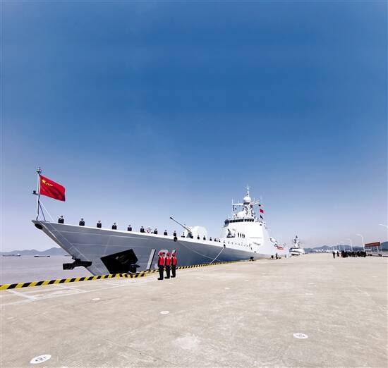 ■4月28日,海军第35批护航编队从浙江舟山某军港解缆启航,前往亚丁湾、索马里海域执行任务。此次编队由导弹驱逐舰太原舰、导弹护卫舰荆州舰以及综合补给舰巢湖舰组成,携带舰载直升机2架、特战队员数十名,任务官兵共690余人。新华社发 |