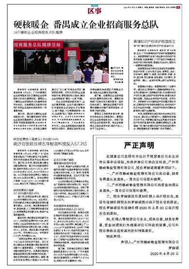 近期本公司发现有不法分子假冒本公司名义对外从事非法活动,为维护本公司的合法权益,广州市银岭物业管理有限公司、股东罗丽嫦郑重声明如下: