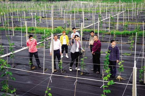 ■茂名市财政局驻双目村第一书记颜艳带领村两委成员到百香果基地走访。 |