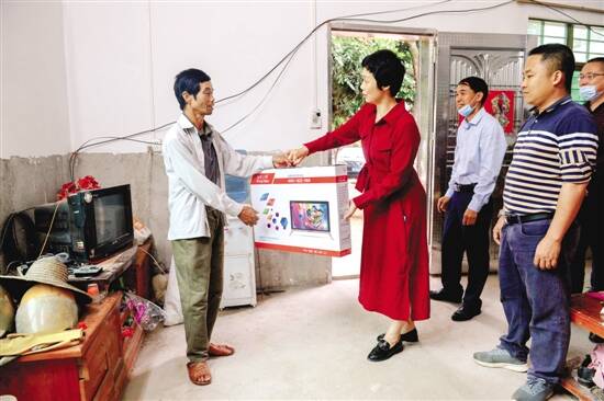 ■珠海市财政局驻黄羌村第一书记冯梅梅给贫困户送新电视机。 |