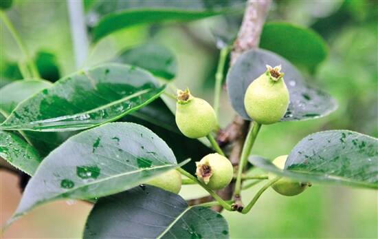 ■4月下旬,云浮市郁南县冲枚村的桂花梨已经结出了绿色的小果子。 |