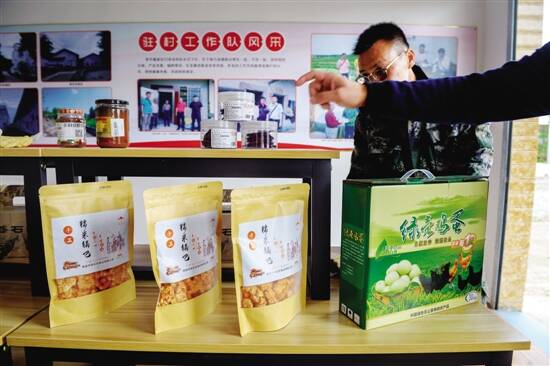 ■在江头扶贫产业成果电商展示厅内,涌溪村的胚芽米、绿壳鸡蛋、农家烤花生、客家桑葚酒,以及南雄其他地方的农特产品,令人目不暇接。 |