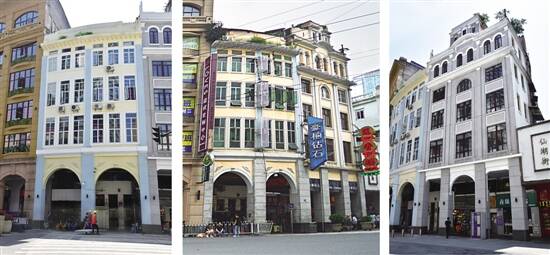 ■北京路231号传统风貌建筑线索改造后立面色彩、窗已变。 ■北京路231、233、235号传统风貌建筑线索改造前。 ■北京路233、235号传统风貌建筑线索改造后外观已改变。 |