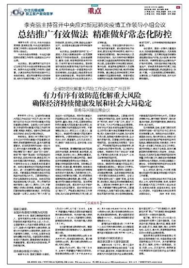 据新华社电 5月7日,中共中央政治局常委、国务院总理、中央应对新冠肺炎疫情工作领导小组组长李克强主持召开领导小组会议。