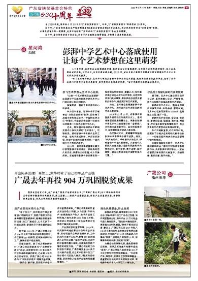 这十年,广东省扶贫基金会严格按照国务院《基金会管理条例》的有关规定,充分利用扶贫资金“末梢监督”系统,认真负责管好每一笔捐款,这其中也包括了历年来的“广东扶贫济困日”各企业的捐赠。 这十年,参与扶贫济困日的企业,亦有不少经验做法值得借鉴,并取得了诸多积极成效。 @ 星河湾 汕尾 二十多年前,星河湾在汕尾捐建教学楼、医疗设备以及修路建桥,经年累月以深厚感情陪伴、助力汕尾革命老区发展。时至今日,这份关爱未减分毫。2019年,该企业助力彭湃中学提质升级而捐建的艺术中心正式落成并移交使用。 “有了星河湾的助力,艺术中心将成为彭湃中学学生的艺术摇篮,包括来自贫困家庭的学生,也有了条件在家门口接受专业艺术类教育,享受更好的美育教学资源。”该中学副校长陈贤溢由衷表示。 放飞艺术梦想从艺术中心起航 “让每一个艺术梦想在这里萌芽”这是新立于汕尾市彭湃中学艺术中心门前石碑上的石刻题字。 寥寥数语,镌刻了星河湾的初心和承诺。 作为百年老校,彭湃中学不仅哺育出“农民运动先驱”彭湃,还培育了战地文学先驱丘东平、“中国民俗学之父”钟敬文、中国音乐学院第一任院长马思聪等一大批杰出的中华儿女。 过去,陈贤溢从每届学生中都能发现不少身怀天赋的“艺术苗子”。可惜的是,虽然彭湃中学有美术名师工作室,也有开展过钢琴、声乐培训课程,却由于场地和设施等限制,一直未能大力开展艺术教育。 2018年,星河湾集团董事长黄文仔参观彭湃中学时表示,学校具有悠久的历史、深厚的文化底蕴,令人印象深刻。实地看到彭湃中学发展受到一些客观条件限制后,黄董认为,他和星河湾应该也必须为这所学校、为老师和同学们做点事情,帮助学校创造更完善的办学条件,营造更好的艺术氛围。 为此,星河湾全资捐建彭湃中学艺术中心,助力这所百年名校在新时代迈上新征程。 2019年12月10日,在彭湃中学提质升级项目交付使用仪式上,星河湾集团总裁黄健慧女士,将象征彭湃中学艺术中心建成移交的“金钥匙”,交到海丰县委副书记、县长郑俊雄手中,标志着彭湃中学进入新征程。 在交接仪式中,黄健慧深情勉励彭湃中学莘莘学子勇于追梦。她说:“伟大的时代,呼唤着伟大的艺术,呼唤着每个中国人的梦想。只要每个人都把人生理想融入国家和民族的伟大梦想之中,敢于有梦、勇于追梦、勤于圆梦,就会汇聚成实现中国梦的强大力量。” 以品质工程献礼新时代美育教育 据了解,艺术中心建设项目自开工以来,星河湾精心设计、严格管理,努力为校园打造高品质的艺术摇篮。 新落成的艺术中心,整体采用星河湾建筑风格,布局通透、景观优美。艺术中心总建筑面积为10296㎡,包括地上三层、地下一层。 崭新的艺术空间里,会议室、校史馆、彭湃纪念室、绘画室、美术室、舞蹈室、声乐室及教材室等镶嵌其中,将让更多的艺术梦想在这里得以萌芽。 各个功能教室里,不仅布局时尚,还配备了功能齐全的智能化教学设备……一切皆是星河湾亲力亲为监督每个细节的体现。 在陈贤溢副校长眼中,艺术中心落成意味深远:“新时代呼唤美育教育新作为,未来彭湃中学的学生,一定会在窗明几净的现代化教室中,启迪思维,激发创意,提升内涵。”