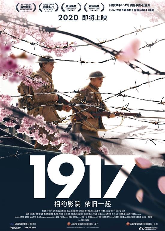 电影讲述了两名战士,为拯救1600名战友,逆行传讯,跨越生死,使命必达的故事,士兵在危机四伏的硝烟战场不停奔跑,只为给前线的战友们带去生的希望。 在此前不久的北美颁奖季中,《1917》就已成为年度大热影片,一举斩获金球奖“剧情类最佳影片”“最佳导演”双料大奖,并入围奥斯卡金像奖10项提名,摘下最佳摄影、最佳视觉效果与最佳音响效果3项桂冠,顶级视听效果令其被赞为年度最适合大银幕观看影片。截至目前,该片在海外网站IMDb上评分8.3,烂番茄新鲜度89%,国内电影网站豆瓣评分8.5,可谓是中外观众、影评人都有口皆碑的奥斯卡佳作。 《1917》全片119分钟,靠着长镜头技术,带来的是前所未有的观影体验,让观众身临其境,成为了第三个主角。“比起看电影,这部影片给我的感受更像是一部沉浸式的剧情游戏”。除了专家和媒体人的好口碑外,在海内外观众心目中也是“好电影”的标志,更有观众给出“沉浸式观影体验”“《拯救大兵瑞恩》之后最佳战争片”等超高评价。