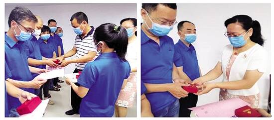 仪式上,潮州市福彩中心主任王艳环介绍,由于各福彩投注站的共同努力,2019年双色球12亿元派奖期间销售增长迅猛,中福彩中心为表彰在派奖活动中表现优秀的投注站,特地设置此次奖励。全省一共有433个销售场所获奖,潮州市共有10个投注站获得此项荣誉,希望获奖投注站能把这份荣誉转化为前进的动力,再接再厉。 根据活动奖励规则,在双色球12亿元派奖期间,潮州市双色球销量前20名中,评出获奖销售场所10个,分别是:44190152、44190180、44190206、44190214、44190228、44190229、44190244、44190250、44190251、44190324,于4月17日-21日在潮州福彩网公示,无异议。 随后,市民政局二级调研员吴为民、社会工作和慈善促进科科长杨振炎等与会领导上台为获奖投注站颁发“黄金徽章”奖品与贺信。 吴为民代表市民政局对大家为福利事业所作贡献表示感谢之余,还嘱咐各销售网点在日常销售中牢记做好站内消毒等防疫工作,并希望在接下来的工作中,潮州福彩能继续严抓防疫工作,保障销售安全,促进福彩发行工作健康持续发展。