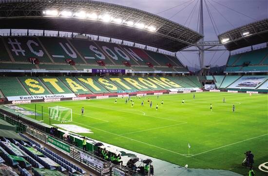 ■5月8日,韩国K联赛2020赛季首场比赛在韩国全罗北道全州世界杯体育场举行。新华社发 |