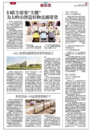 新快报讯 记者杨英杰报道 5月12日,大岭山镇妇联在大塘村创华公司开展第二期“乐购东莞 玉兰荟萃”,妇联主席直播带货——约“惠”母亲大岭山专场活动,为大岭山智造好物直播带贷。 活动中,镇委委员